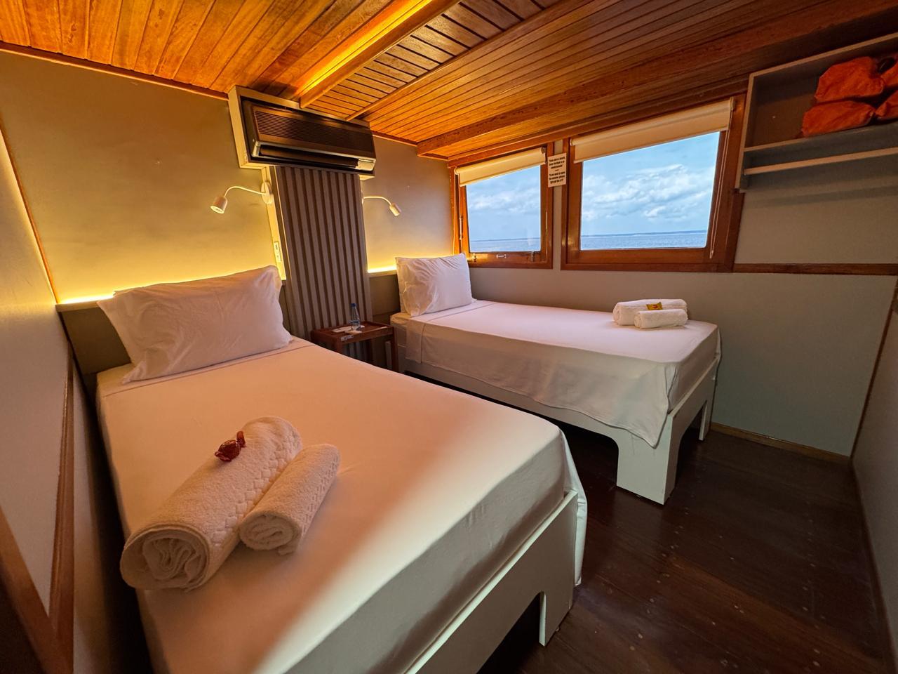Hotel rooms and ship cabins are air-conditioned and feature private baths with hot showers.